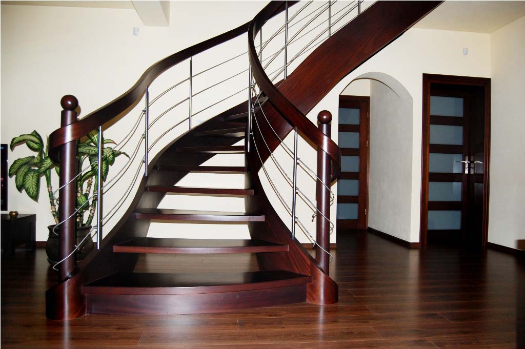 Balustrada stal szlachetna z drewnianym pochwytem.