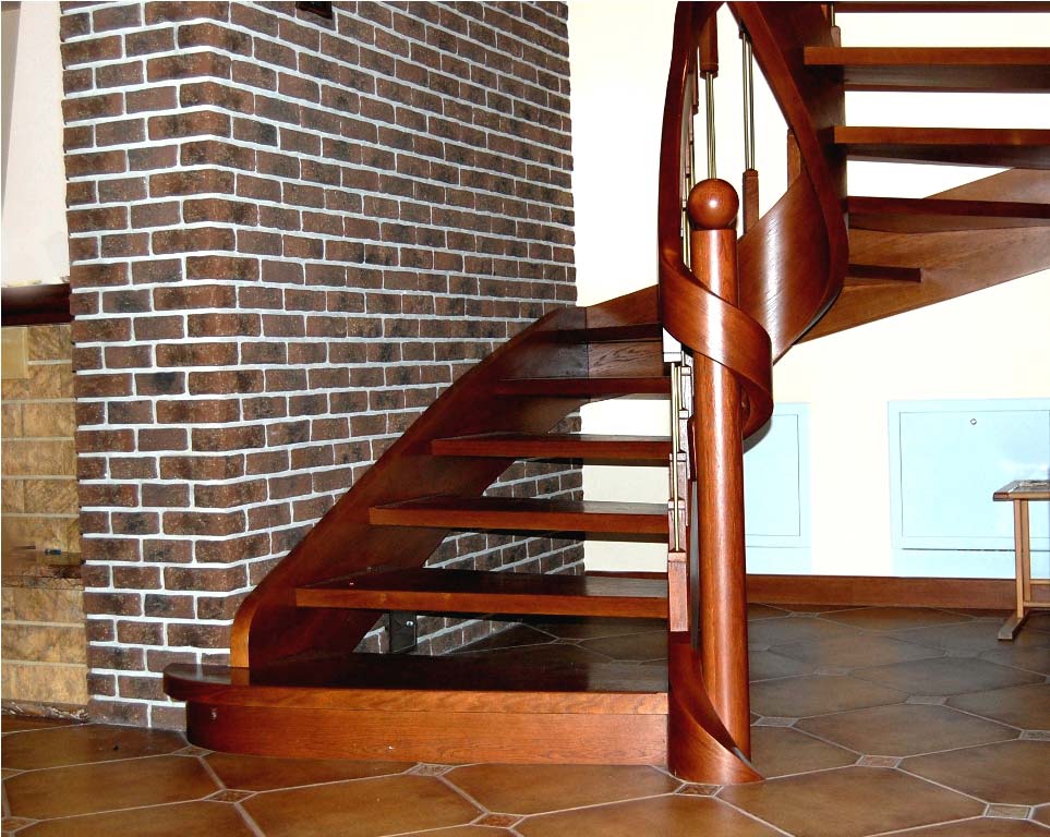 Ażurowe schody na policzkach giętych SP056 Ażurowe schody na policzkach giętych. Balustrada tralki łączące stal szlachetną i drewno. Drewno dąb. Projekt i wykonanie Schody Prudlik. Model: SP056