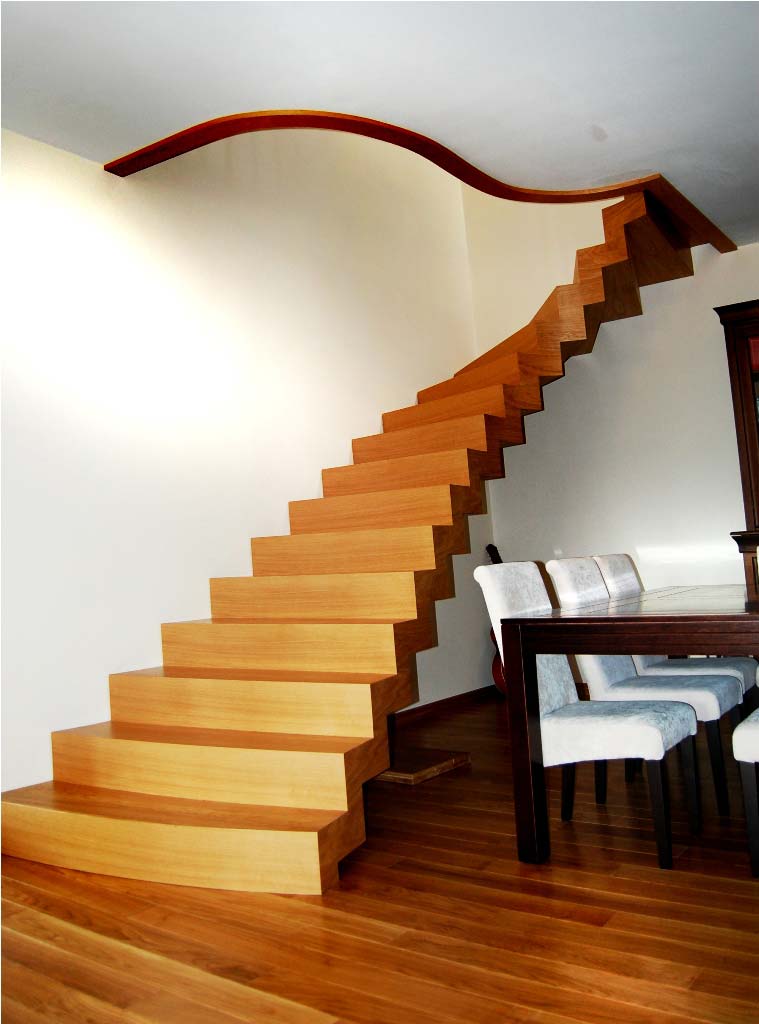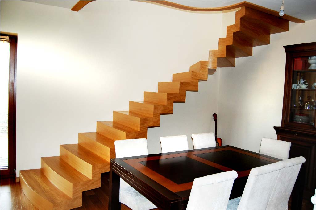 Nowoczesne schody dywanowe SP024 Nowoczesne schody dywanowe. Drewno dąb naturalny. Projekt i wykonanie Schody Prudlik. Model: SP024