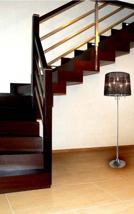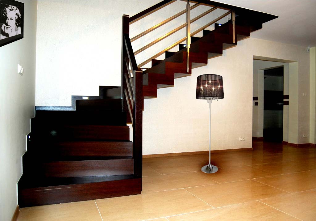 Nowoczesne schody dywanowe SP038 Nowoczesne schody dywanowe. Balustrada stal nierdzewna. Drewno venge. Projekt i wykonanie Schody Prudlik. Model: SP038