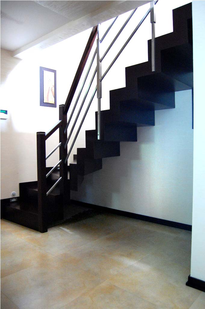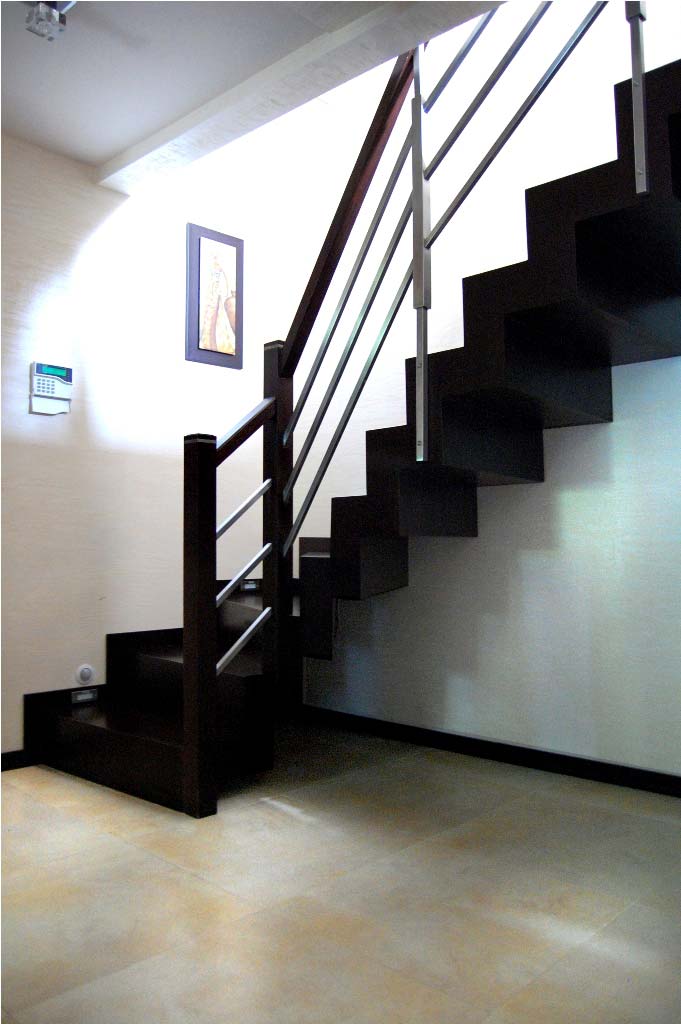 Nowoczesne schody dywanowe SP053 Nowoczesne schody dywanowe. Balustrada stal szlachetna z drewnianym pochwytem. Drewno venge. Projekt i wykonanie Schody Prudlik. Model: SP053