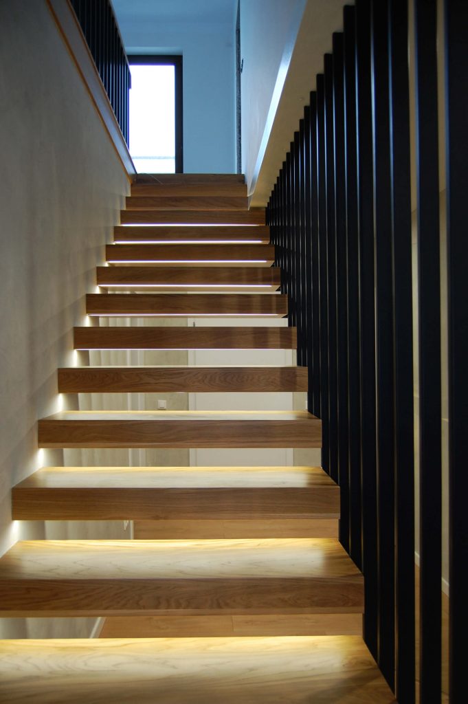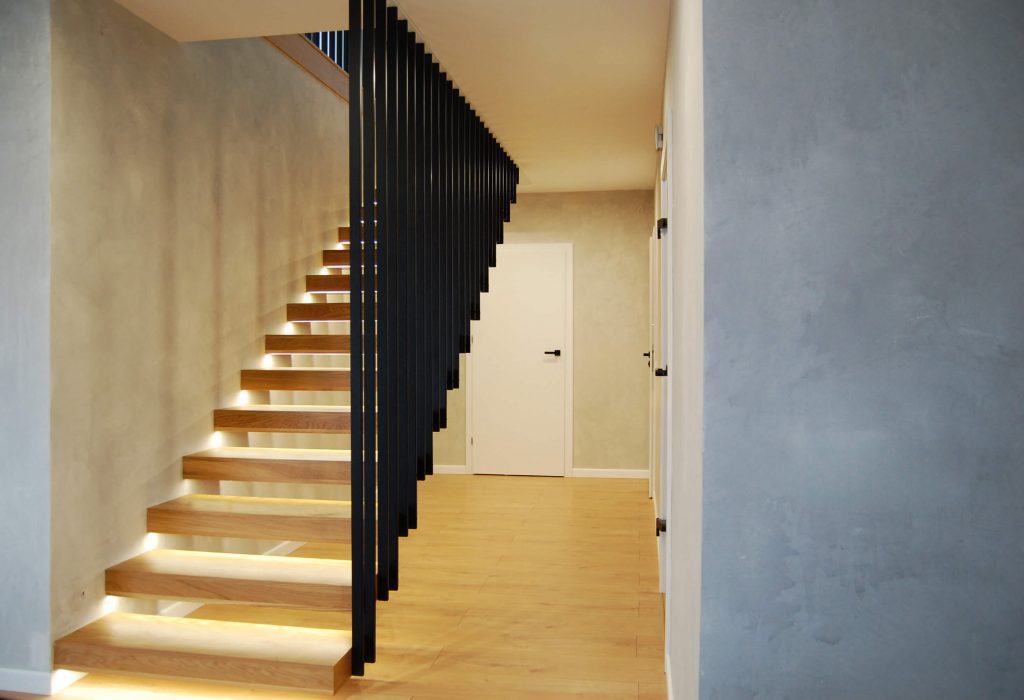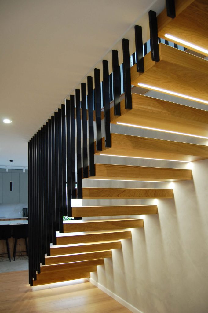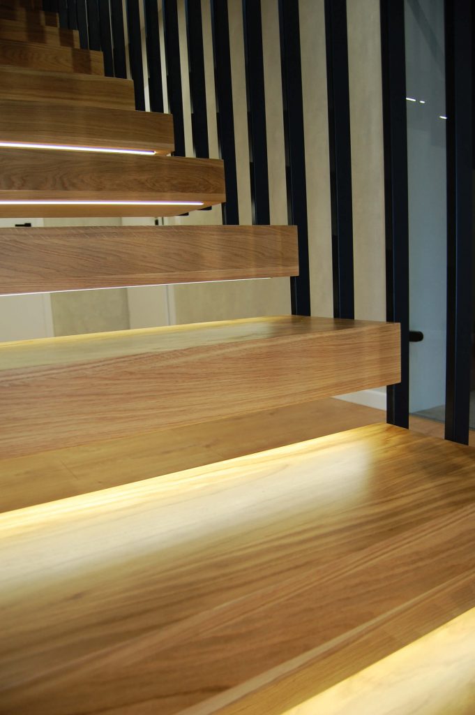 Podświetlenie wpuszczane w stopień na czujnikach ruchu.