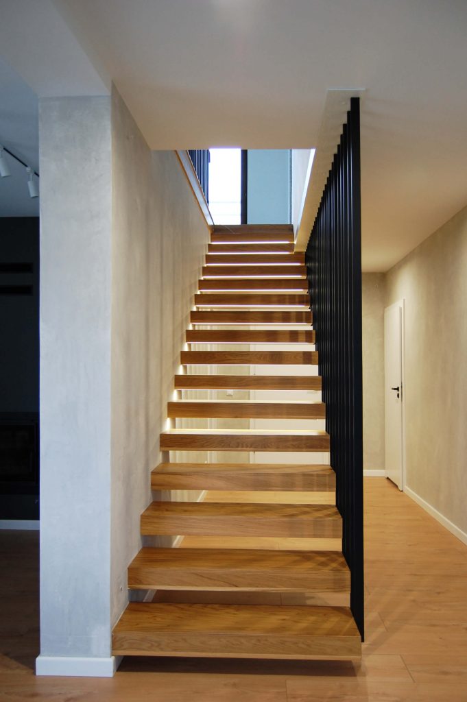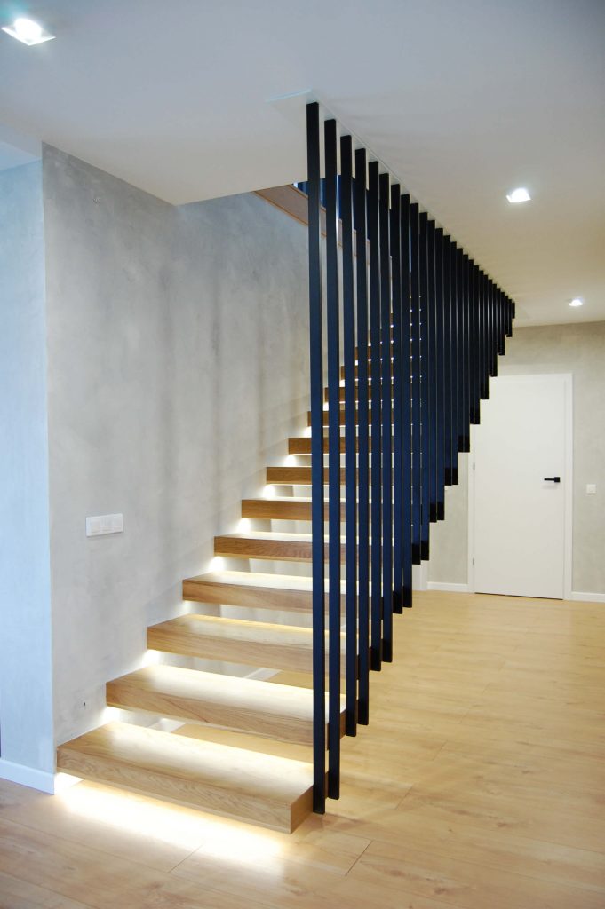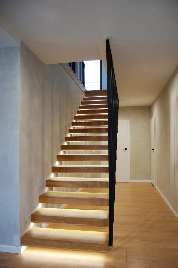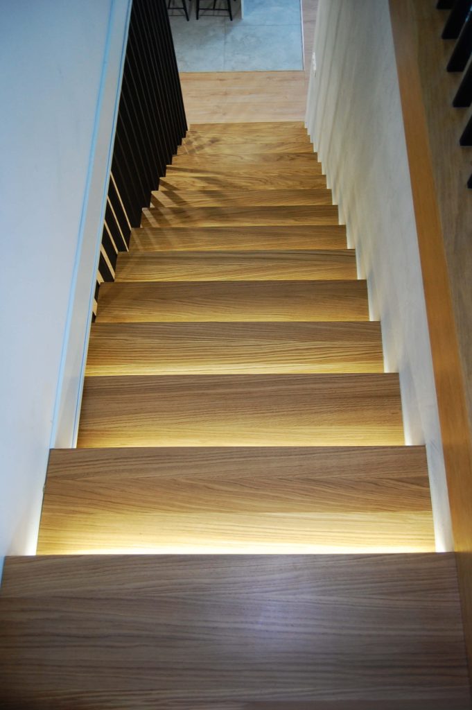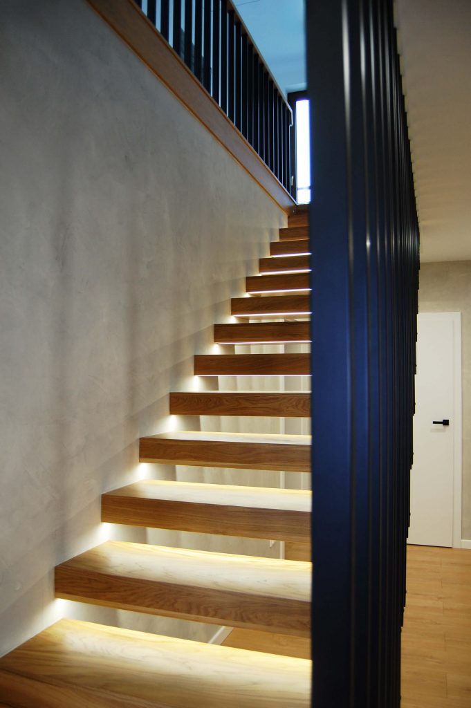 Podświetlenie wpuszczane w stopień na czujnikach ruchu.