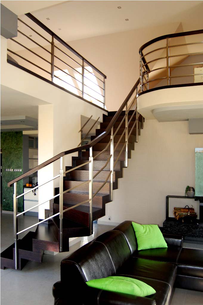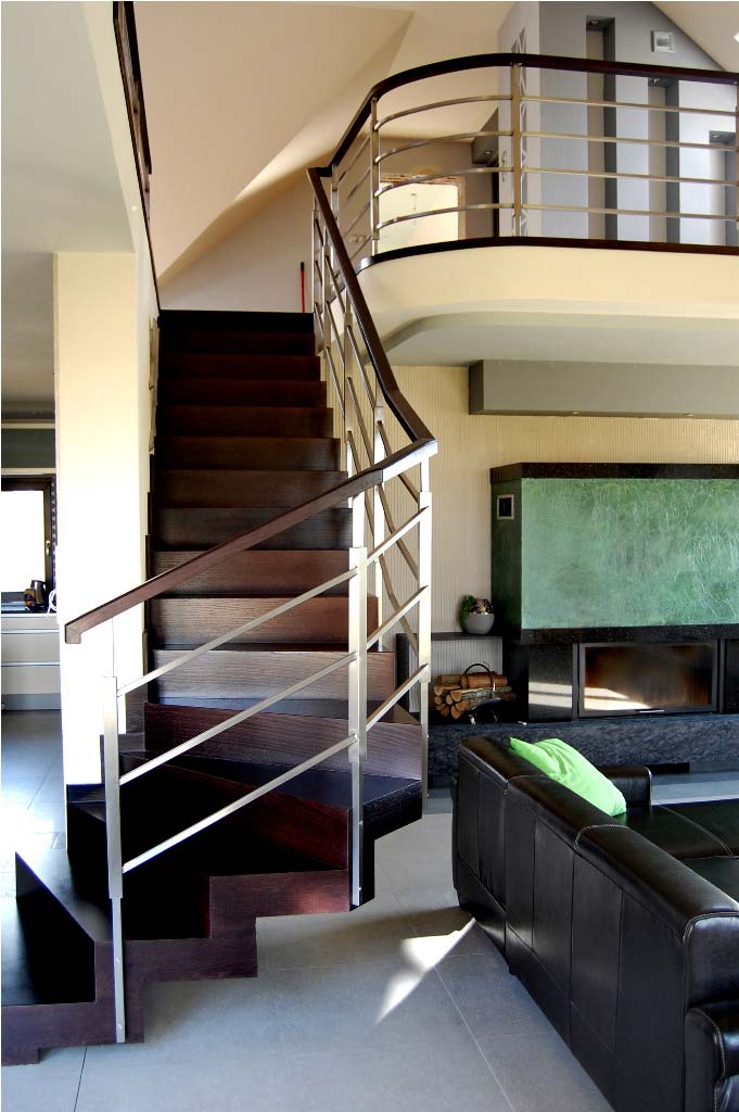 Schody dywanowe SP001 Nowoczesne schody dywanowe. Balustrada stal nierdzewna. Drewno venge. Projekt i wykonanie Schody Prudlik. Model: SP001