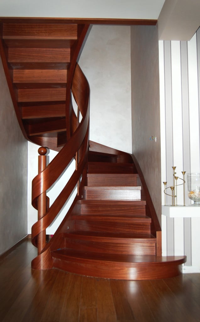 Schody typu C SP0078 Schody na policzkach giętych. Balustrada wstęgowa. Projekt i wykonanie Schody Prudlik. Model: SP078