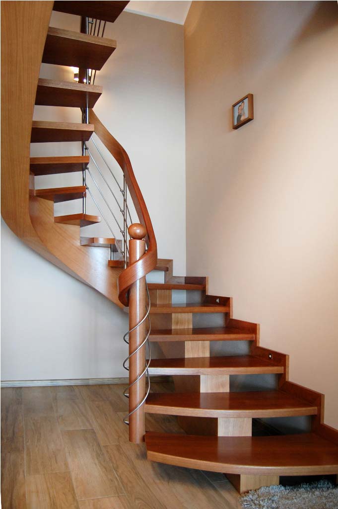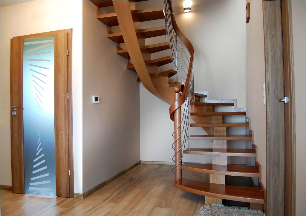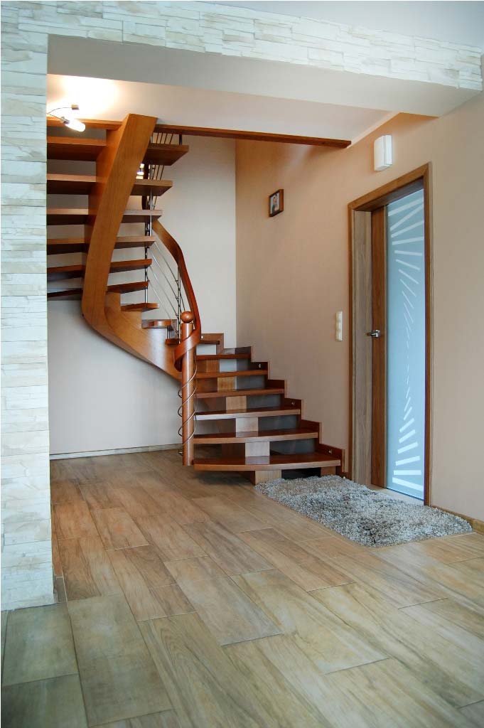 Prezentowane schody w kształcie litery C to eleganckie, gięte rozwiązanie, które idealnie wpisuje się w nowoczesne wnętrza, jednocześnie zachowując ciepło naturalnego drewna. Nasz model SP066 łączy funkcjonalność ze stylowym designem — płynna linia, starannie dobrane proporcje i perfekcyjne łączenia sprawiają, że konstrukcja nie tylko wygląda znakomicie, ale także służy przez lata.