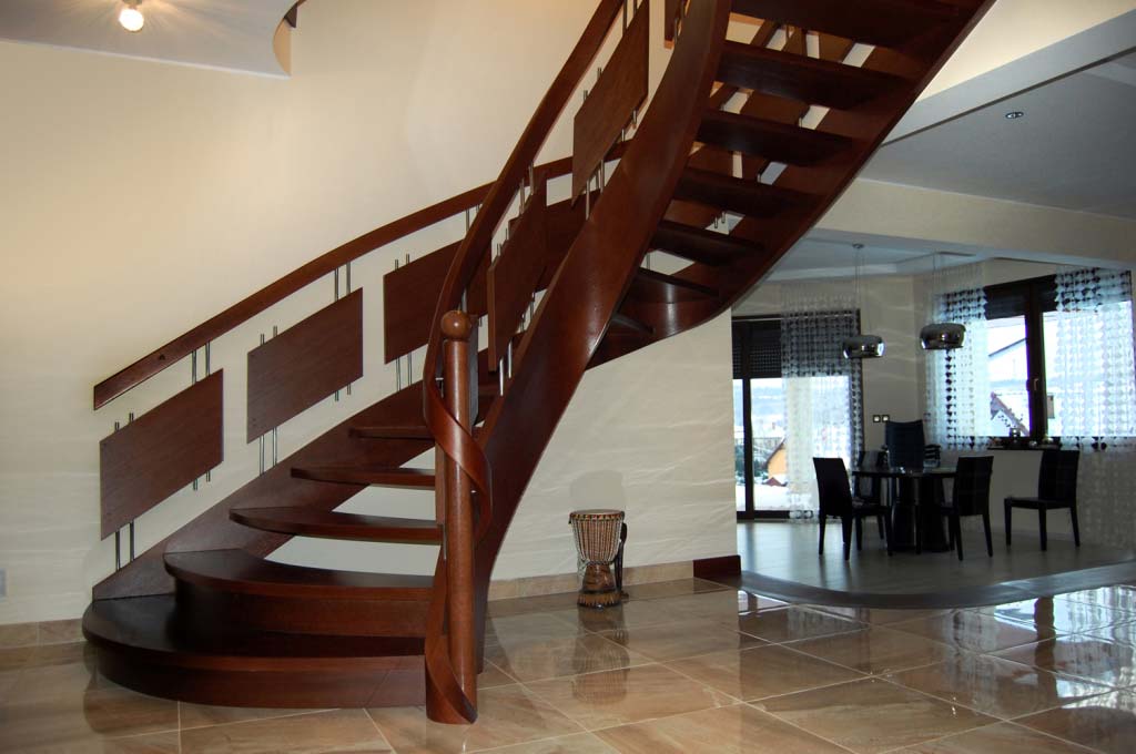 Schody kręcone to klasyczny rodzaj schodów drewnianych, kojarzony powszechnie z elegancją i ekskluzywnością, dlatego polecamy je do zastosowania w klasycznie urządzonych pomieszczeniach oraz z wykorzystaniem drewna „naturalnej” barwy. Dodatkowo schody można ozdobić detalami na poręczach. Oczywiście każdy produkt jest indywidualnie dopasowany do pomieszczenia pod względem wymiarów oraz rodzaju drewna.